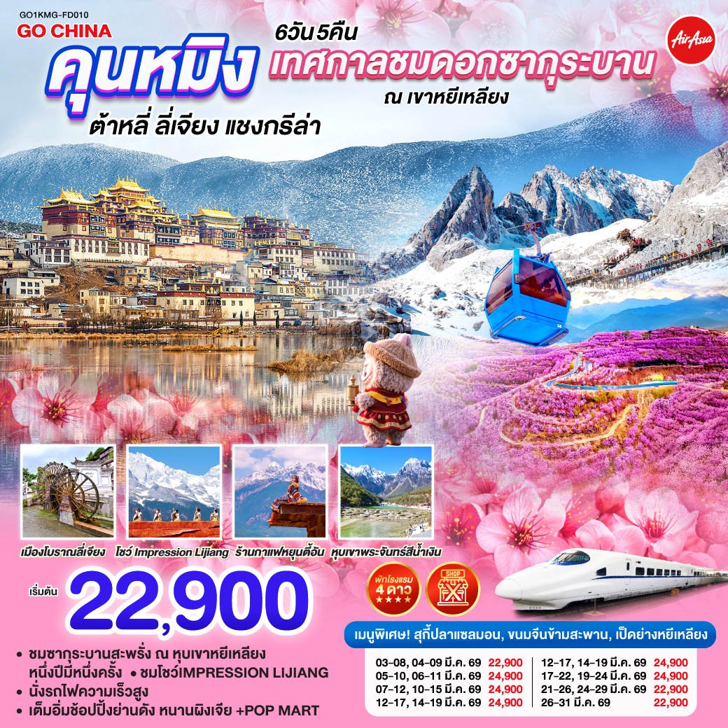 CHN07.35---GO1KMG-FD010_คุนหมิง เทศกาลชมซากุระบาน ณ เขาหยีเหลียง ต้าหลี่ ลี่เจียง แชงกรีล่า โดยรถไฟค