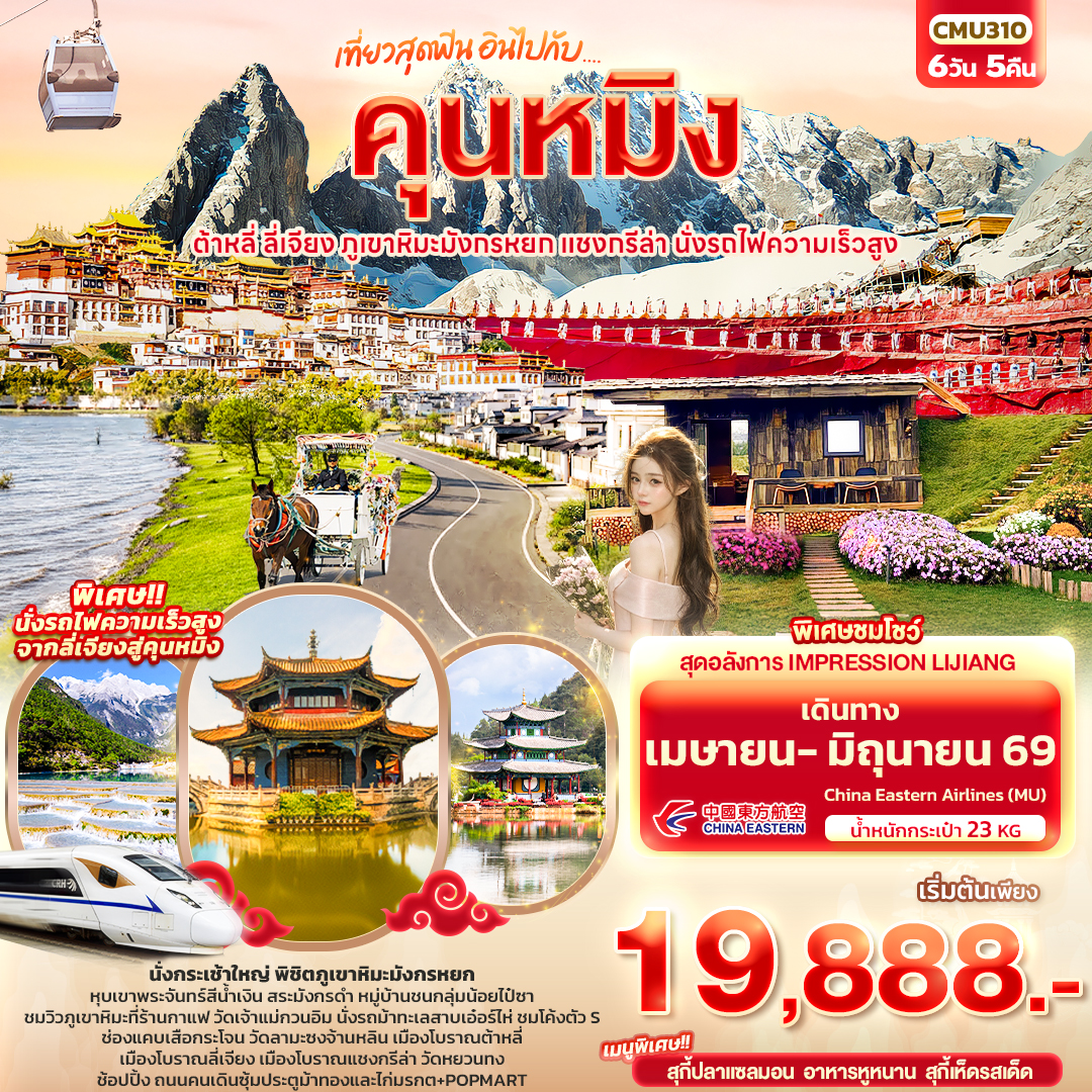 CHN03.10---CMU310_เที่ยวสุดฟิน อินไปกับ...คุนหมิง ต้าหลี่ แชงกรีล่า ลี่เจียง ภูเขาหิมะมังกรหยก นั่งร