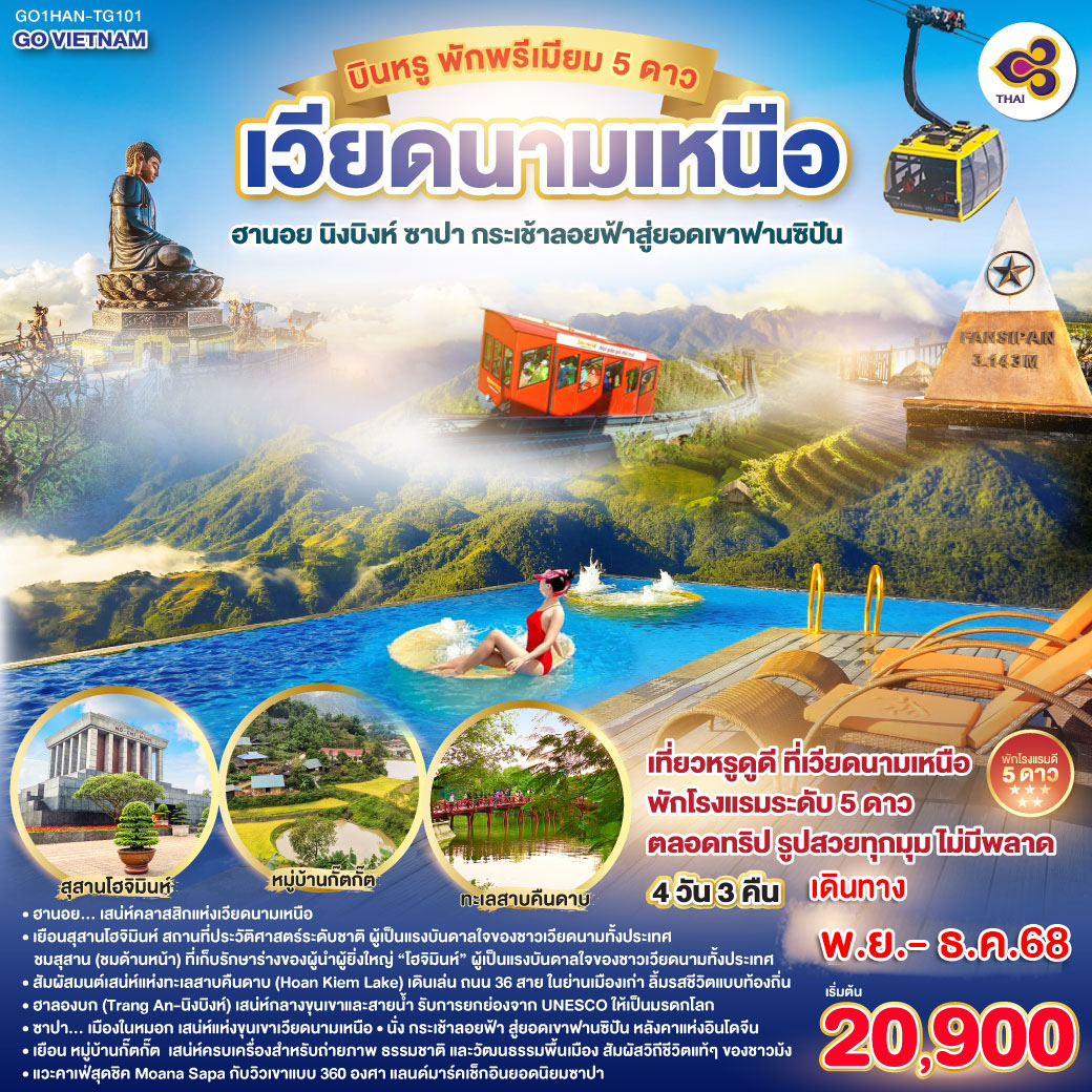 VTN12.06---GO1HAN-TG101_เวียดนามเหนือ บินหรู พัก 5ดาว _ ฮานอย นิงบิงห์ ซาปา กระเช้าลอยฟ้าสู่ยอดเขาฟา