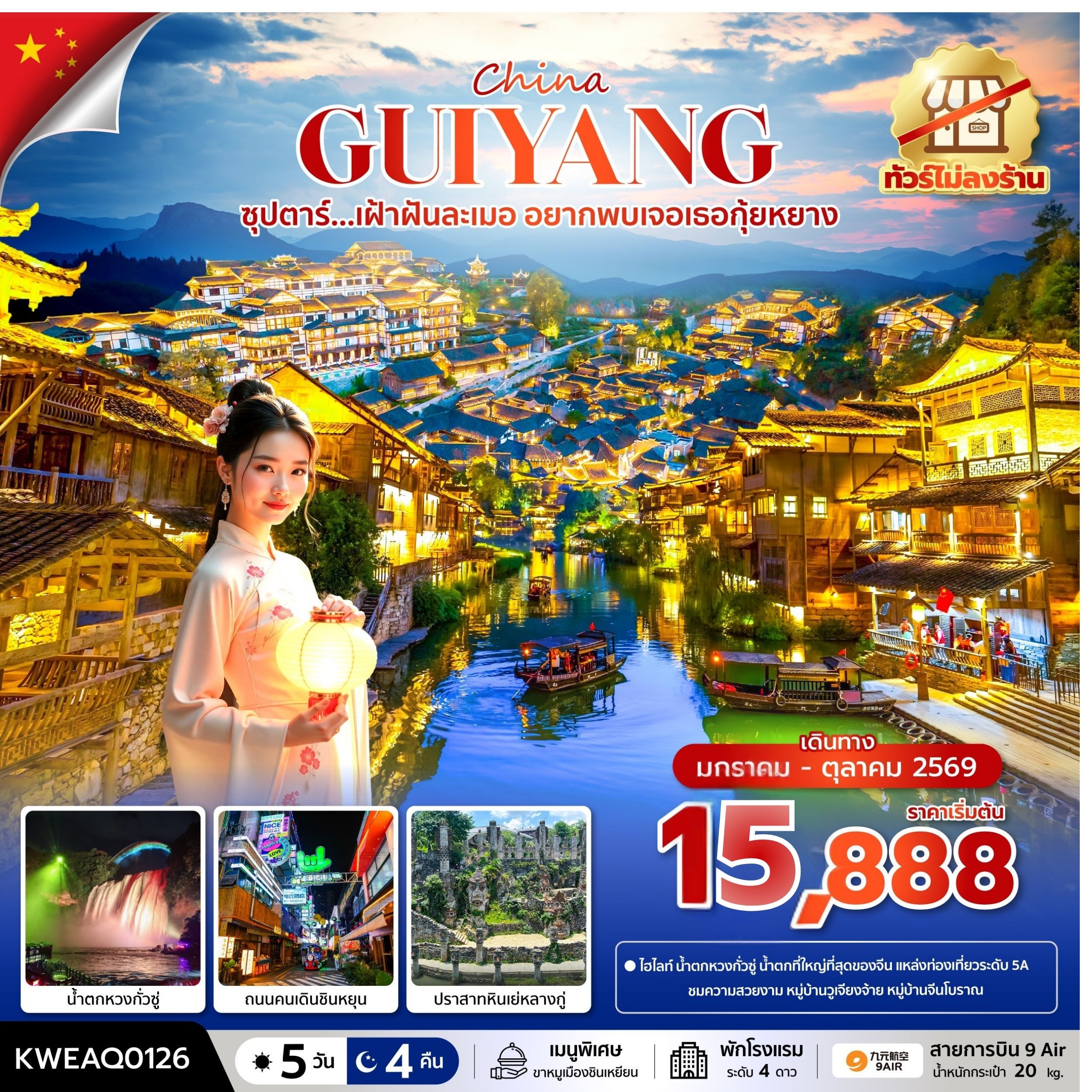 CHN15.01---MTWT250137_บินตรงกุ้ยหยาง สะพานฮัวเจียง น้ำตกหวงกั่วซู่ อุทยานเสินเฉียนกู่ เมืองโบราณชิงเ