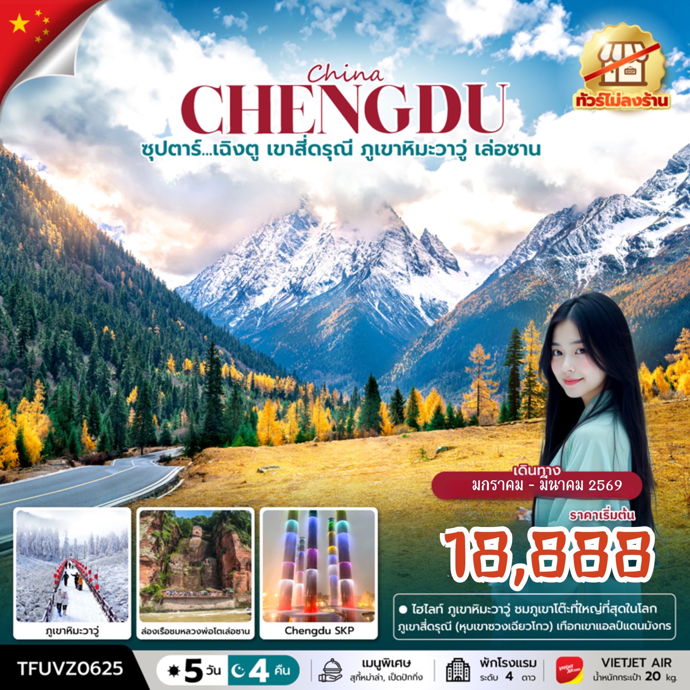 CHN03.19---CVZ276_Crown of Sichuan Peaks สี่ดรุณี ต๋ากู่ปิงชวน เฉิงตู ซวงเฉียวโกว ตูเจียงเอี้ยน 5D4N