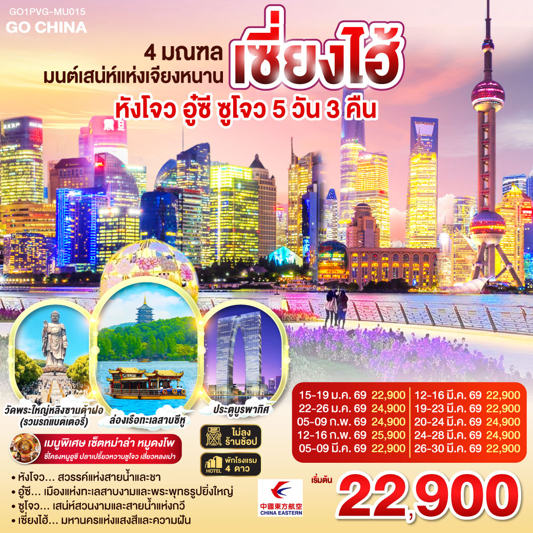 CHN07.06---GO1PVG-MU015_4 มณฑล มนต์เสน่ห์แห่งเจียงหนาน หังโจว อู๋ซี ซูโจว เซี่ยงไฮ้ 5D3N_ (MU)_JAN-M