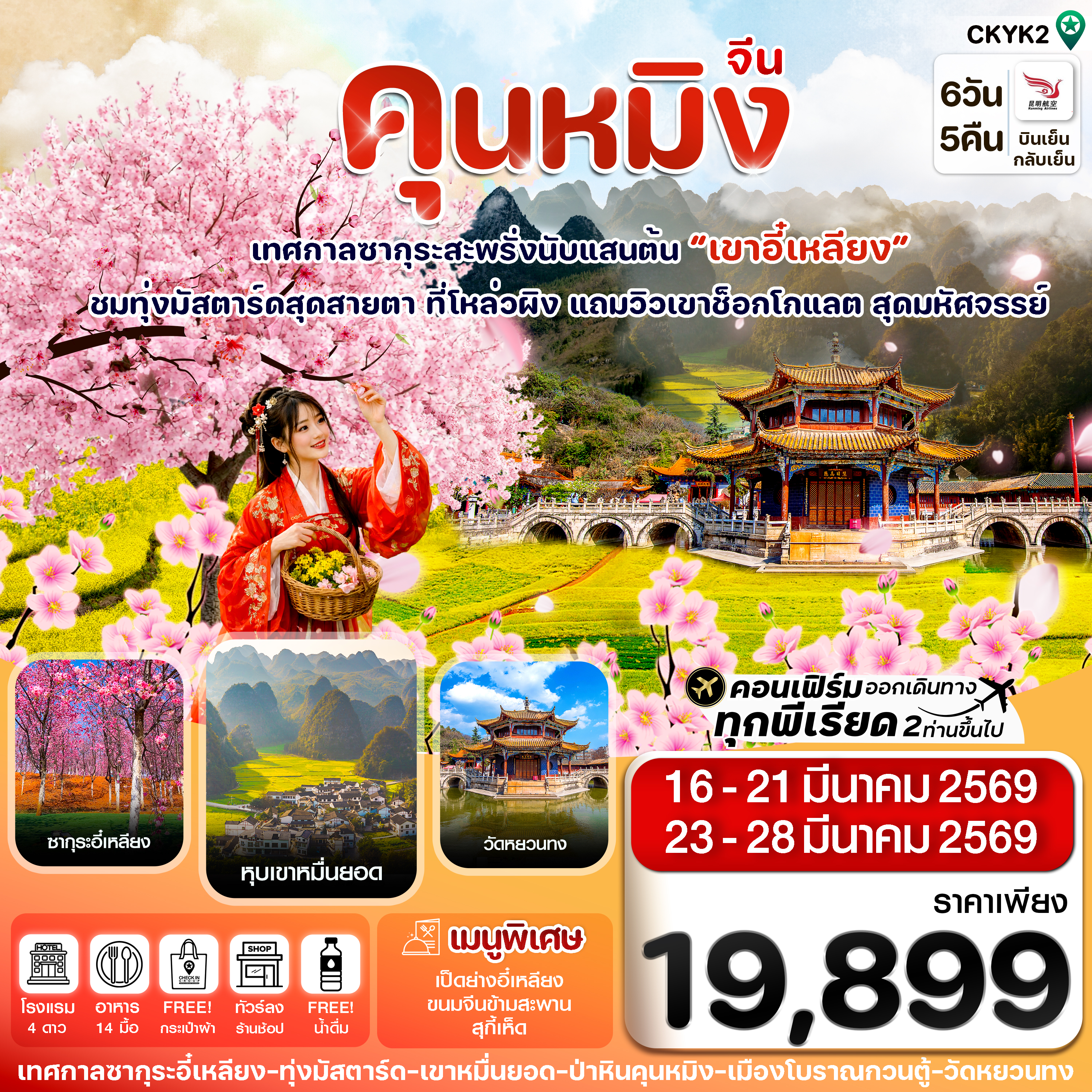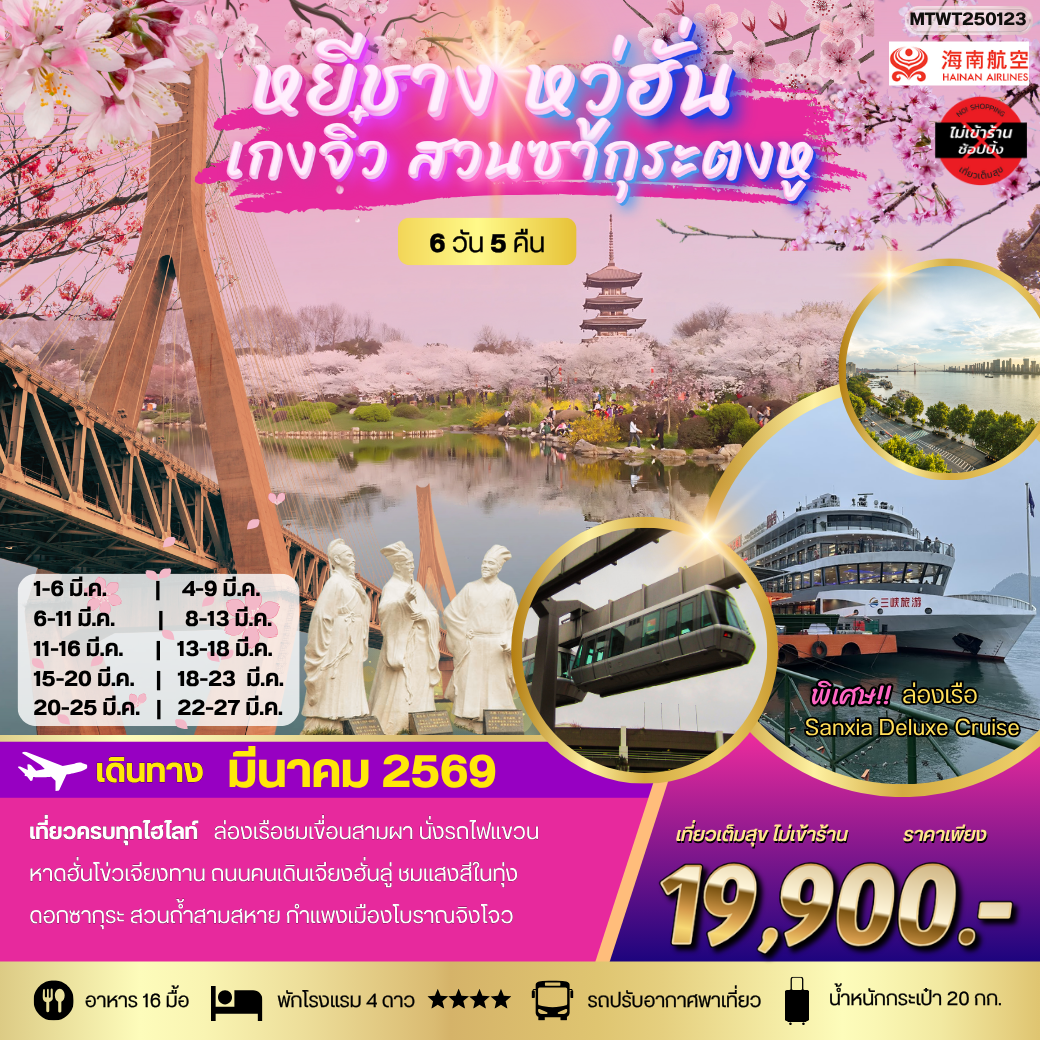 CHN15.06--MTWT250123_เที่ยวเหยีชาง-หวู่ฮั่น-เกงจิ๋ว-ชมสวนซากุระตงหู 6D5N บิน HU *เที่ยวเต็มสุข ไม่เข