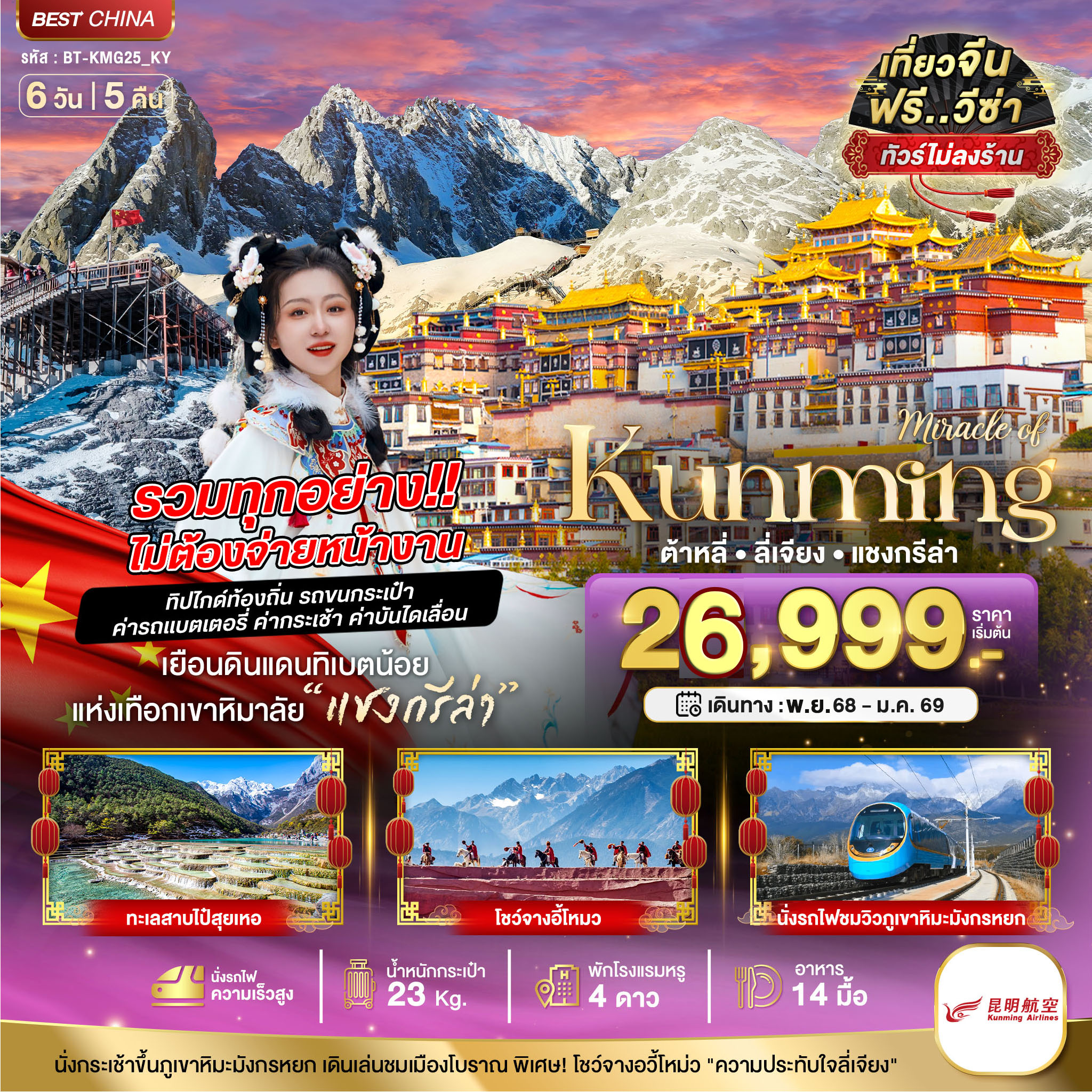 CHN01.23---BT-KMG25_KY_มหัศจรรย์...คุนหมิง ต้าหลี่ แชงกรีล่า ลี่เจียง (รวมทุกอย่างไม่ต้องจ่ายหน้างาน