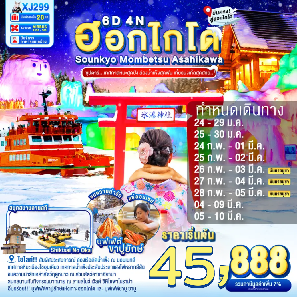 HOK02.01----XJ299_HOKKAIDO SOUNKYO MOMBETSU ASAHIKAWA OTARU ซุปตาร์...เทศกาลหิมะสุดปัง ล่องน้ำแข็งสุ