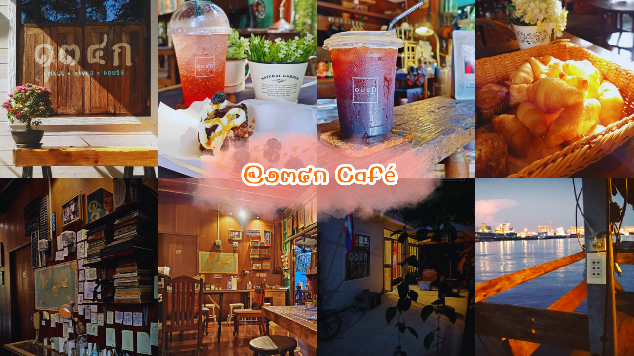 ที่ร้านจะเป็นบ้านไม้ สไตล์วินเทจริมน้ำ ทางร้านจะมีพวกขนม