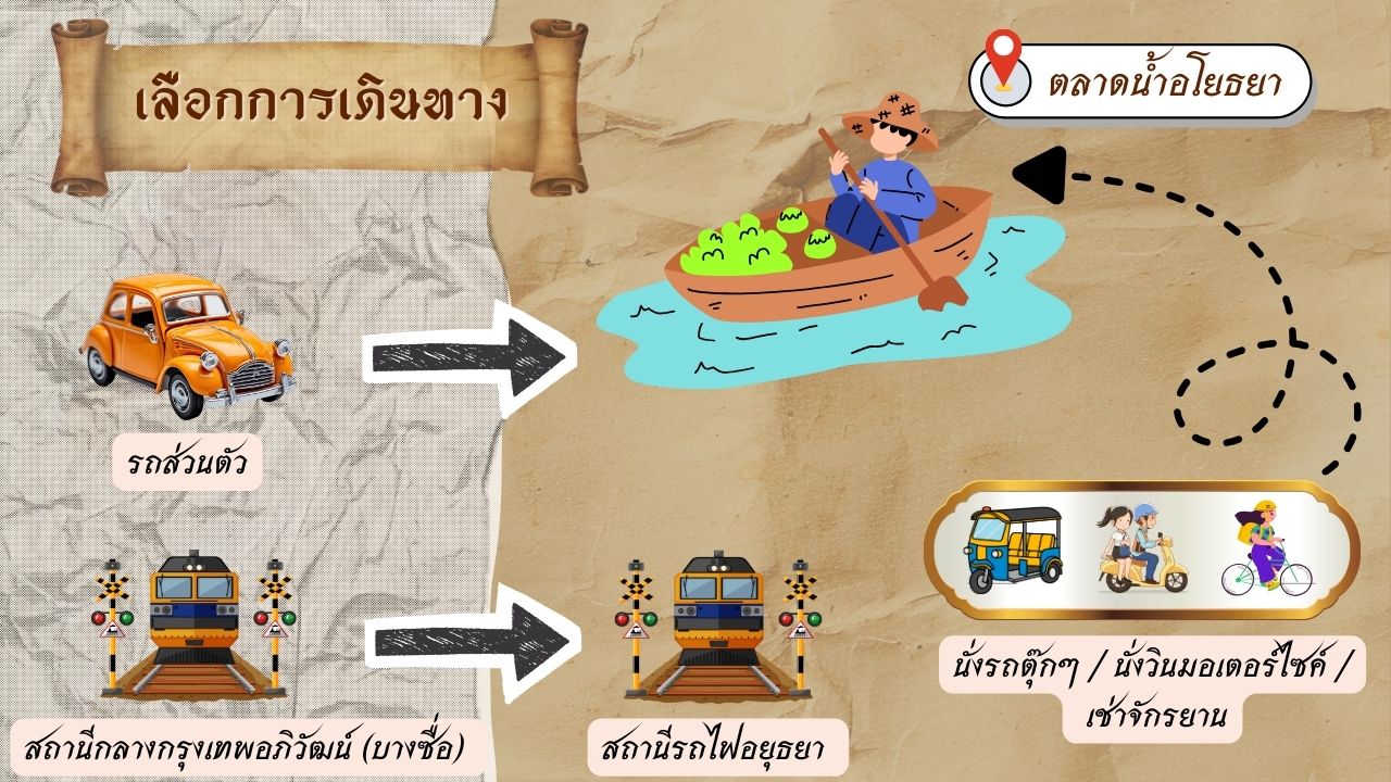 • รถส่วนตัว : ปักหมุดไปที่ “ตลาดน้ำอโยธยา”
