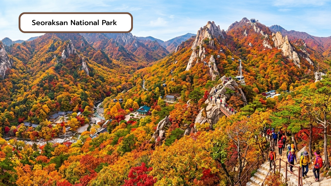 ๆ ของเกาหลี ช่วงฤดูใบไม้ร่วงภูเขาจะเต็มไปด้วยสีแดง ส้ม เหลือง ไล่เฉดสวยอลังการ