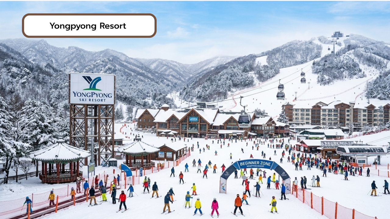 · ลานสกี Yongpyong Resort – ลานสกีระดับโอลิมปิก วิวภูเขาขาวโพลน ถ่ายรูปออกมาคือฟีลต่างประเทศชัดมาก และยังมีโซน beginner สำหรับมือใหม่ด้วยค่ะ