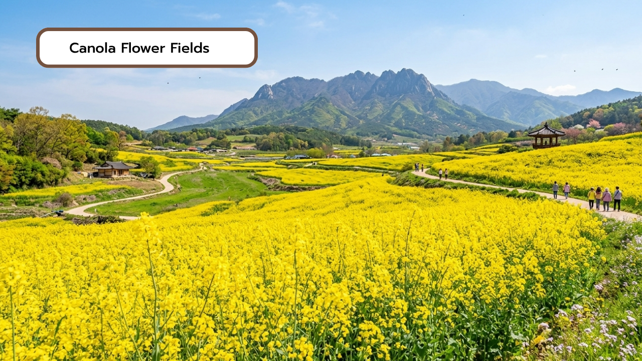 • Canola Flower Fields – ทุ่งดอกเรพซีดสีเหลืองสดใส