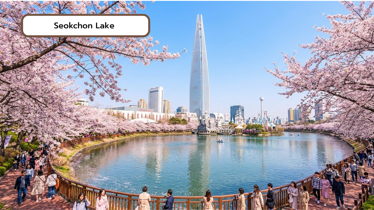 Seokchon Lake - ทะเลสาบกลางเมืองที่รายล้อมด้วยทางเดินและวิวตึกสวย